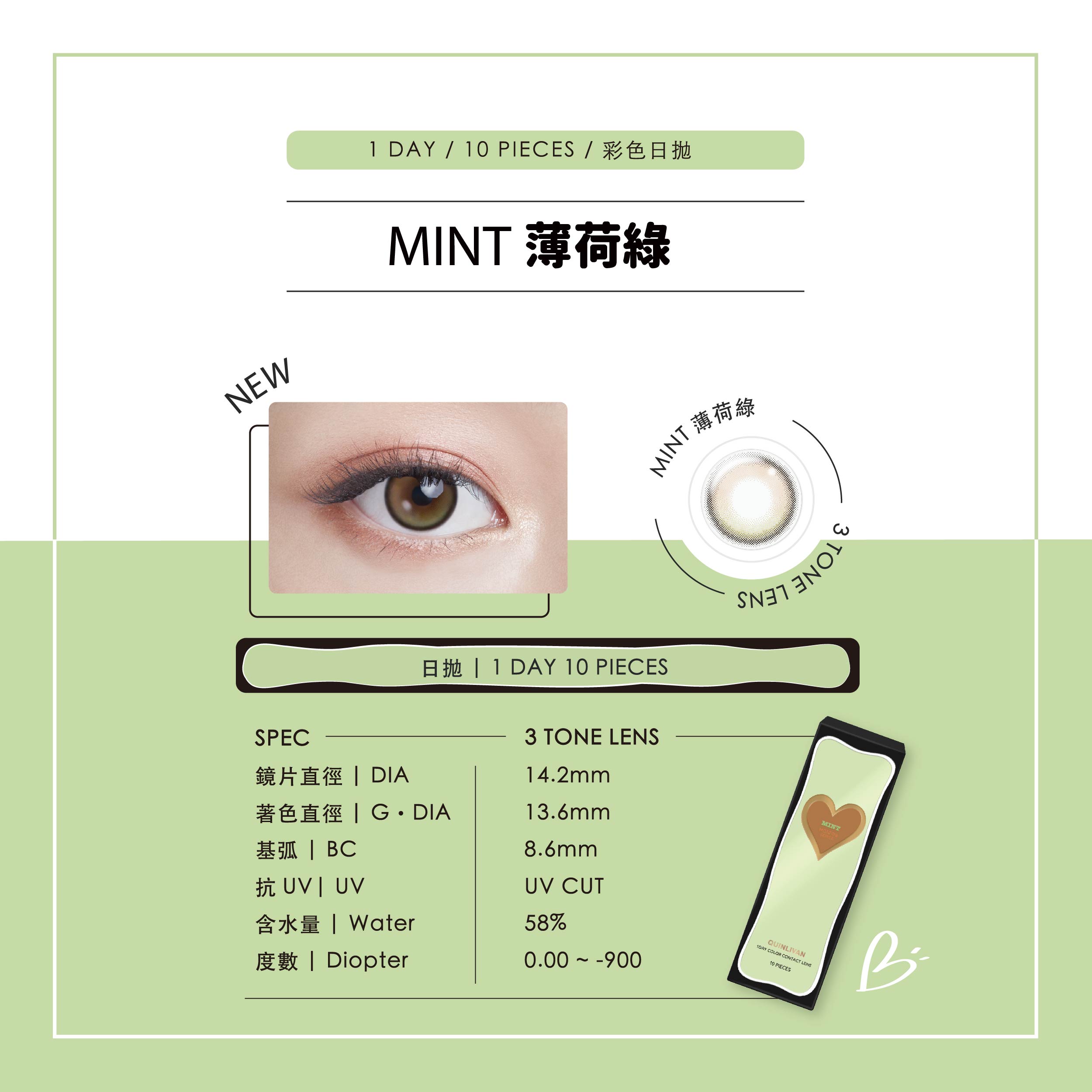 Quinlivan 昆凌Maison|微美瞳彩色日拋10片裝-MINT 薄荷綠