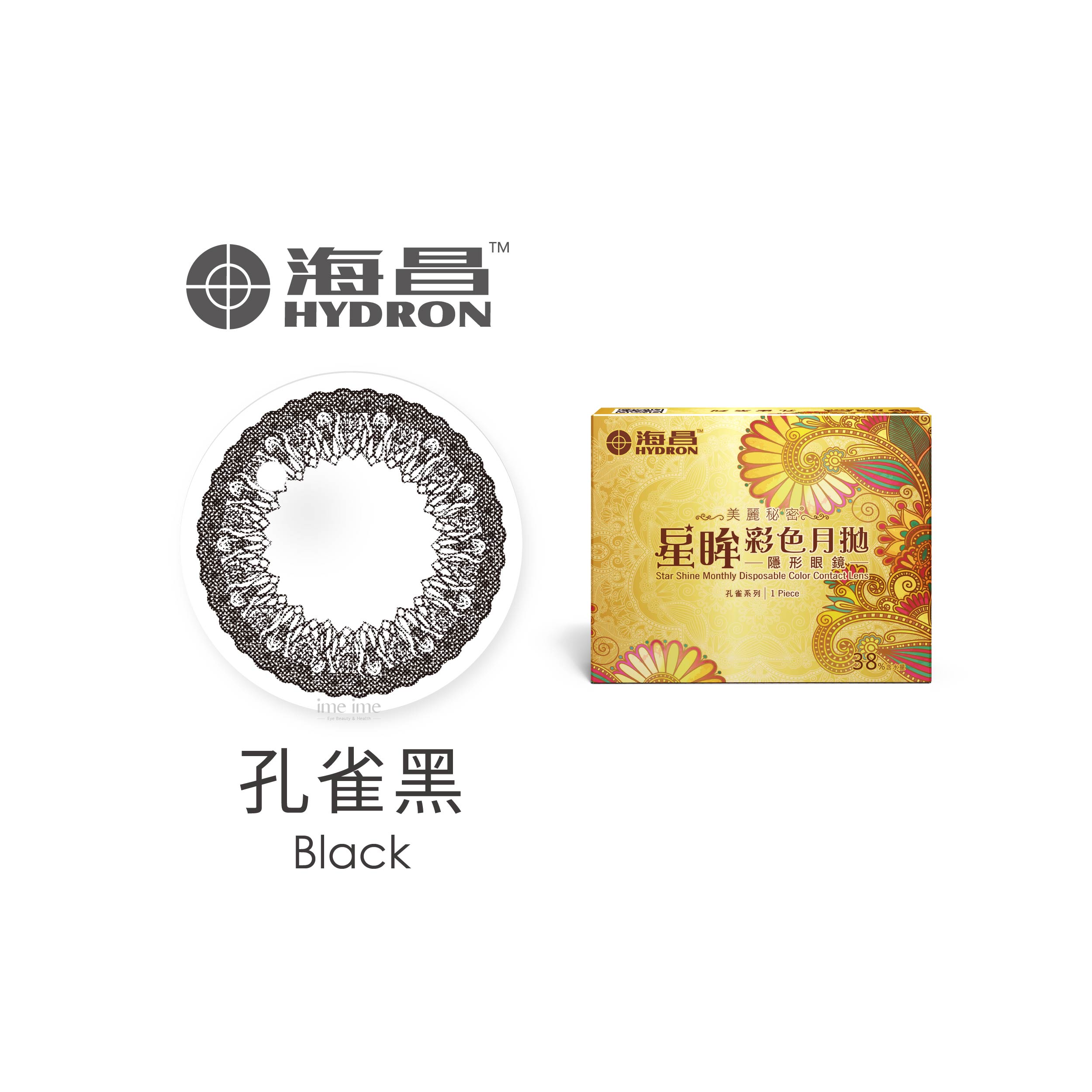 Hydron海昌孔雀彩色月拋1片裝 - 孔雀黑